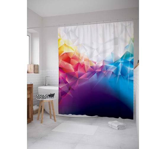 Штора (занавеска) для ванной JoyArty "Радужная абстракция" из сатена, 180х200 см с крючками, sc_22216