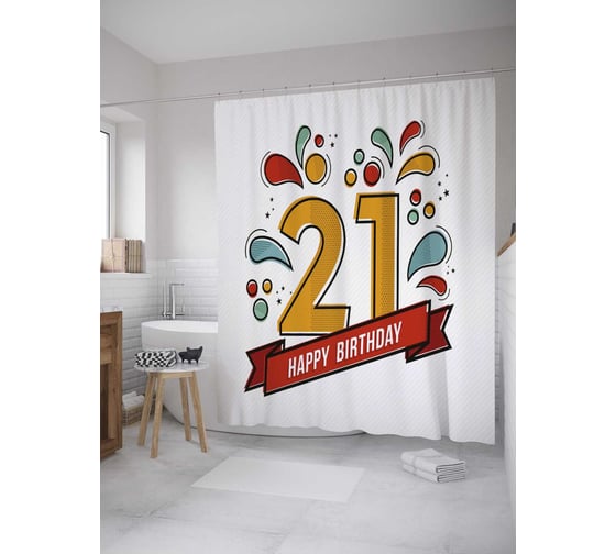 Штора (занавеска) для ванной JoyArty "Радужная дата" из сатена, 180х200 см с крючками, sc_33156
