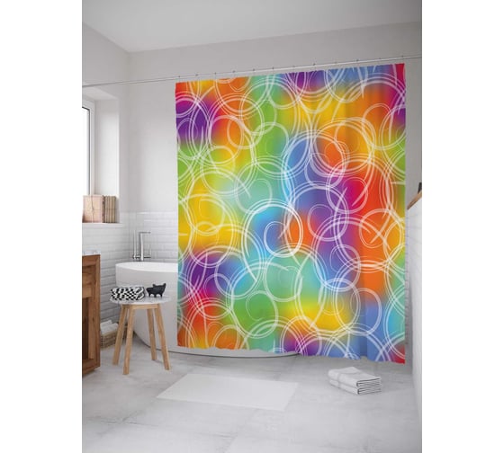 Штора (занавеска) для ванной JoyArty "Радужное марево" из сатена, 180х200 см с крючками, sc_16972