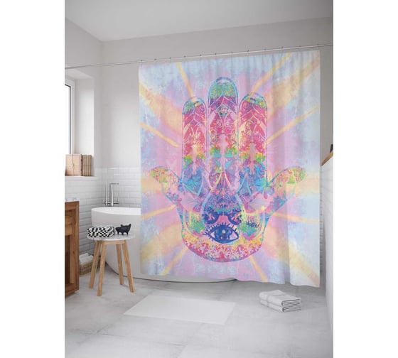 Штора (занавеска) для ванной JoyArty "Радужное сияние хамсы" из сатена, 180х200 см с крючками, sc_38622