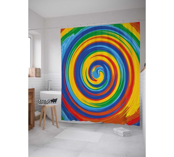 Штора (занавеска) для ванной JoyArty "Радужное завихрение" из сатена, 180х200 см с крючками, sc_38470