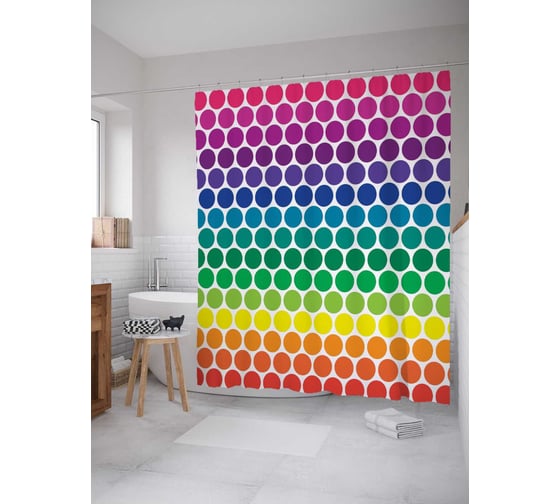 Сопутствующие товары для шторки-занавески JOYARTY Радужные кружочки из сатена, 180х200 см с крючками