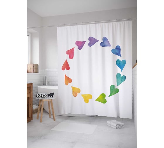 Сопутствующие товары для шторки-занавески JOYARTY Радужные сердца из сатена, 180х200 см с крючками