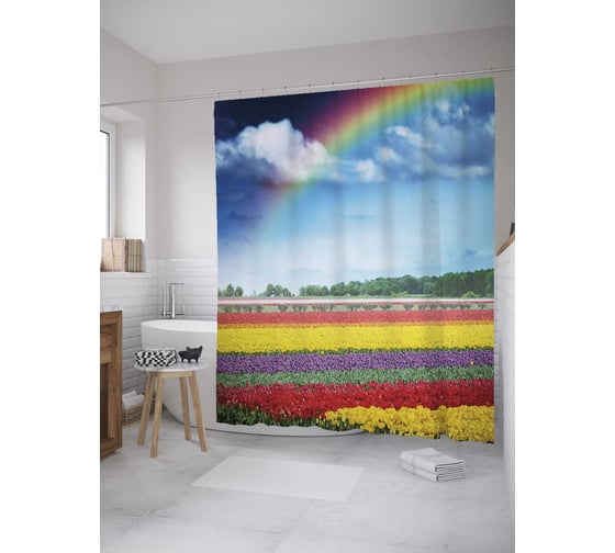 Штора (занавеска) для ванной JoyArty "Радужный день" из сатена, 180х200 см с крючками, sc_10331
