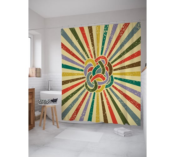 Штора (занавеска) для ванной JoyArty "Радужный узел" из сатена, 180х200 см с крючками, sc_63041