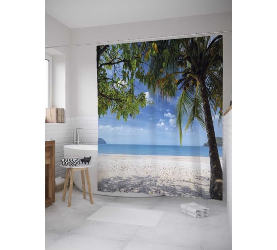 Сопутствующие товары для шторки-занавески JOYARTY Райский остров из сатена, 180х200 см с крючками