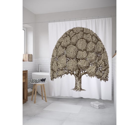 Штора (занавеска) для ванной JoyArty "Раскидистая крона" из сатена, 180х200 см с крючками, sc_60538