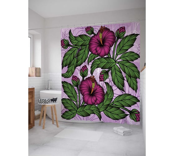 Штора (занавеска) для ванной JoyArty "Распустившиеся бутоны" из сатена, 180х200 см с крючками, sc_72790