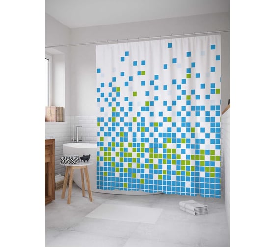 Штора (занавеска) для ванной JoyArty "Расспчатые квадраты" из сатена, 180х200 см с крючками, sc_30736