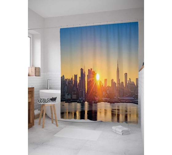 Вопросы и ответы о JOYARTY Горизонт Манхеттена на восходе солнца из сатена, 180х200 см с крючками