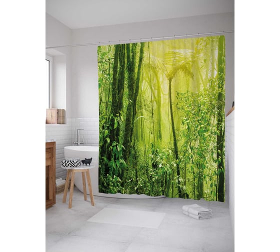 Сопутствующие товары для шторки-занавески JOYARTY Рассвет в лесу из сатена, 180х200 см с крючками