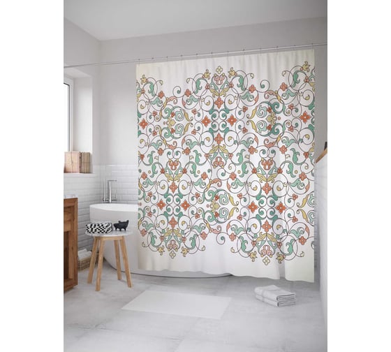 Штора (занавеска) для ванной JoyArty "Растительная решетка" из сатена, 180х200 см с крючками, sc_19960