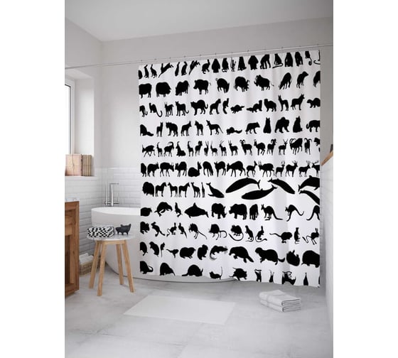 Сопутствующие товары для шторки-занавески JOYARTY Разнообразие животного мира из сатена, 180х200 см с крючками