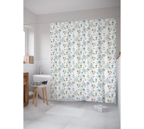 Штора (занавеска) для ванной JoyArty "Разноцветье на лиане" из сатена, 180х200 см с крючками, sc_54553