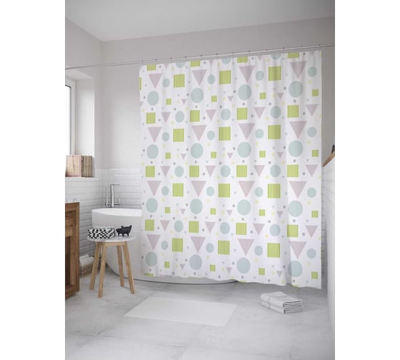 Сопутствующие товары для шторки-занавески JOYARTY Разноцветные фигуры из сатена, 180х200 см с крючками