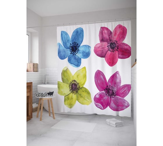 Сопутствующие товары для шторки-занавески JOYARTY Разноцветные лепестки из сатена, 180х200 см с крючками