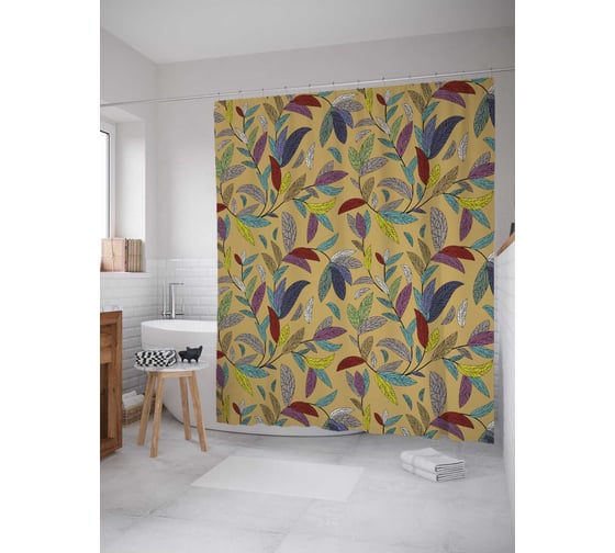 Сопутствующие товары для шторки-занавески JOYARTY Разноцветные листья из сатена, 180х200 см с крючками