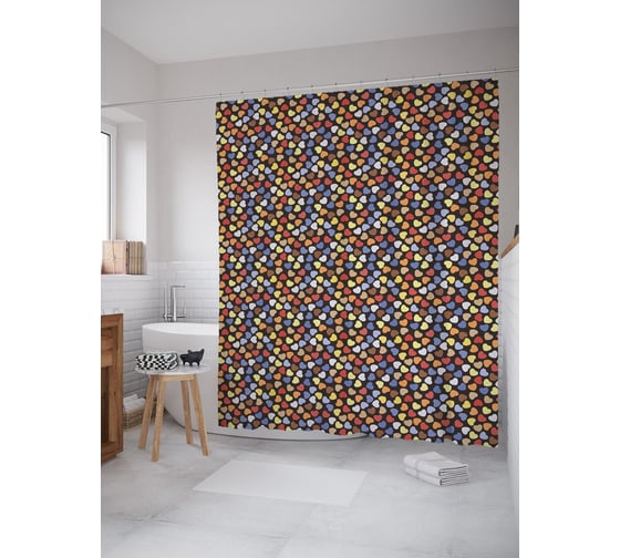 Сопутствующие товары для шторки-занавески JOYARTY Разноцветные сердечки из сатена, 180х200 см с крючками