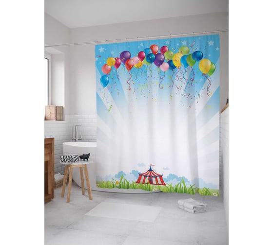 Сопутствующие товары для шторки-занавески JOYARTY Разноцветные шары и цирк из сатена, 180х200 см с крючками