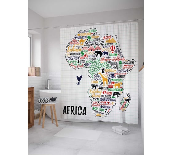 Сопутствующие товары для шторки-занавески JOYARTY Разновцетная Африка из сатена, 180х200 см с крючками