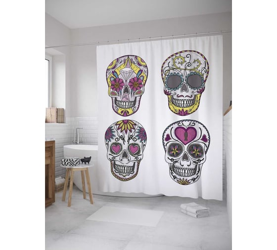 Сопутствующие товары для шторки-занавески JOYARTY Разукрашенные черепа из сатена, 180х200 см с крючками