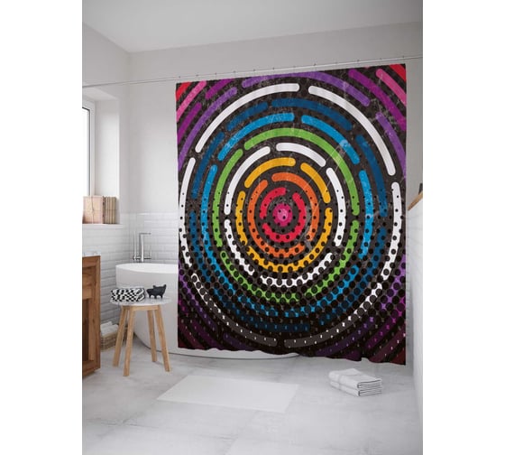 Штора (занавеска) для ванной JoyArty "Разукрашенный пункт" из сатена, 180х200 см с крючками, sc_21394