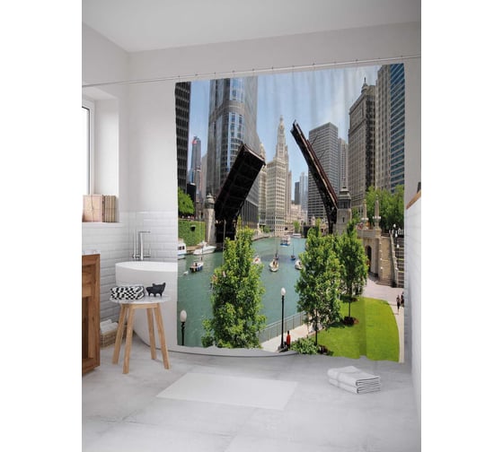Штора (занавеска) для ванной JoyArty "Разводной мост" из сатена, 180х200 см с крючками, sc_36792