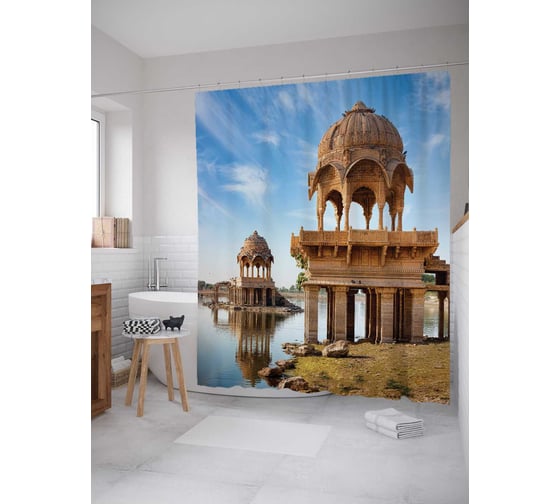 Штора (занавеска) для ванной JoyArty "Речные молитвы" из сатена, 180х200 см с крючками, sc_12174