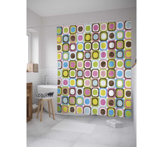 Штора (занавеска) для ванной JoyArty "Ретро квадраты" из сатена, 180х200 см с крючками, sc_28378