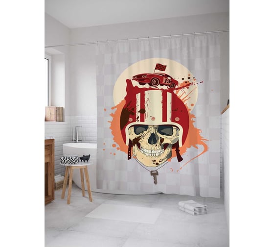 Штора (занавеска) для ванной JoyArty "Рискованные гонки" из сатена, 180х200 см с крючками, sc_13854
