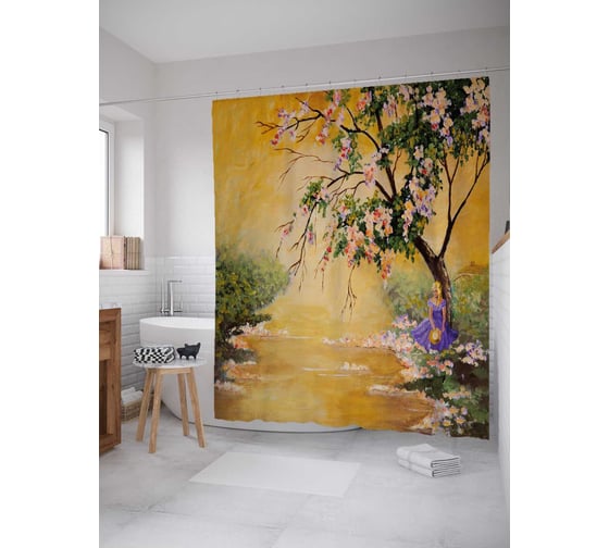 Штора (занавеска) для ванной JoyArty "Рисунок художника" из сатена, 180х200 см с крючками, sc_30201