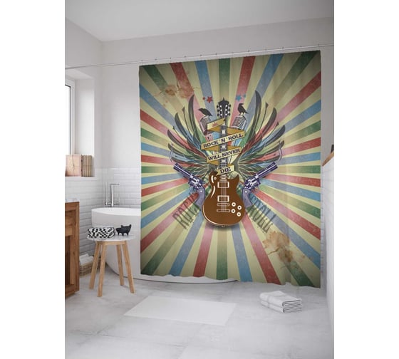 Штора (занавеска) для ванной JoyArty "Рок-гитара с крыльями" из сатена, 180х200 см с крючками, sc_38727553