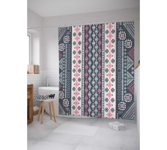 Штора (занавеска) для ванной JoyArty "Ромбовидная вышивка" из сатена, 180х200 см с крючками, sc_26723
