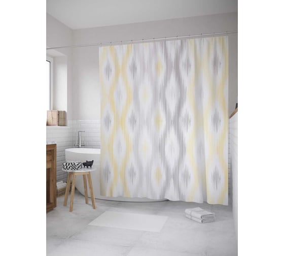 Штора (занавеска) для ванной JoyArty "Ромбовидные зигзаги" из сатена, 180х200 см с крючками, sc_34684