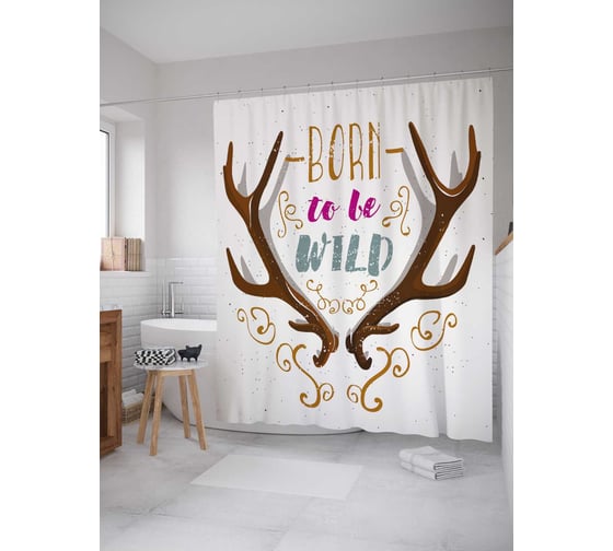 Штора (занавеска) для ванной JoyArty "Рожден быть диким" из сатена, 180х200 см с крючками, sc_37623