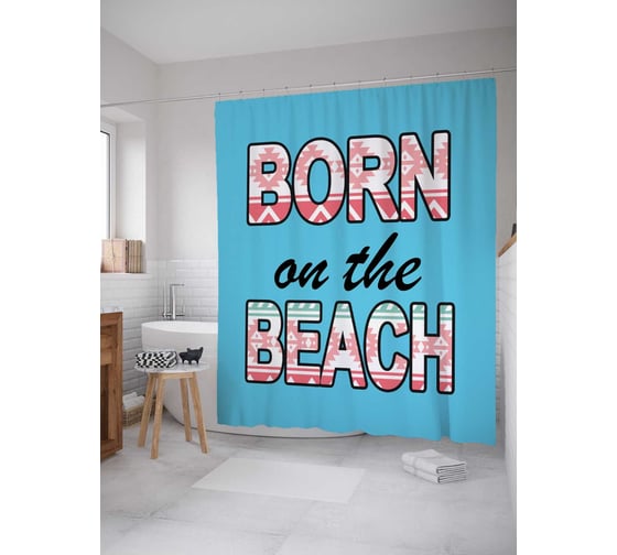 Штора (занавеска) для ванной JoyArty "Рожденный на пляже" из сатена, 180х200 см с крючками, sc_5077