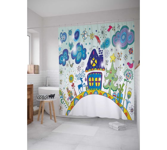 Сопутствующие товары для шторки-занавески JOYARTY Рождественский мотив из сатена, 180х200 см с крючками