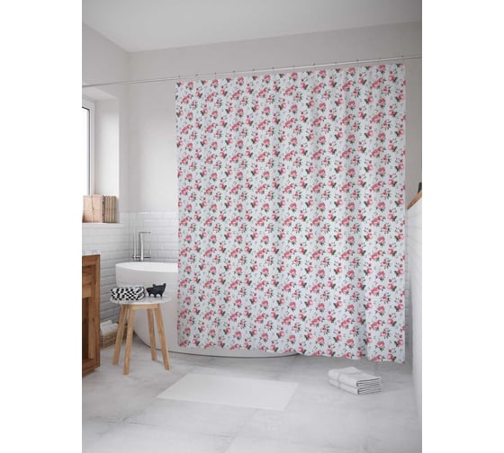 Сопутствующие товары для шторки-занавески JOYARTY Розовые цветочные бутоны из сатена, 180х200 см с крючками