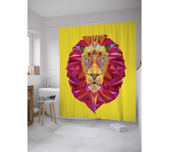 Штора (занавеска) для ванной JoyArty "Рубиновый лев" из сатена, 180х200 см с крючками, sc_8881