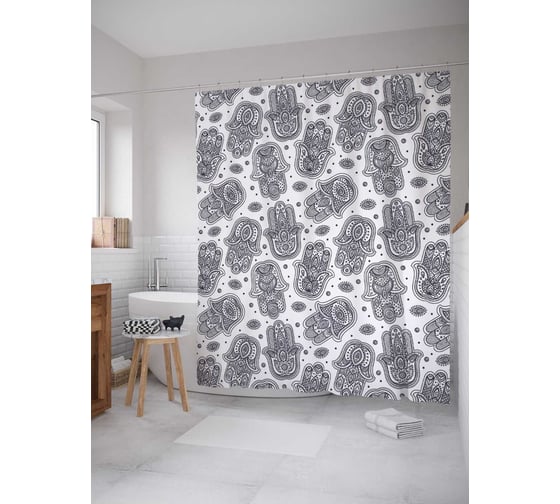 Штора (занавеска) для ванной JoyArty "Рука хамса" из сатена, 180х200 см с крючками, sc_19283