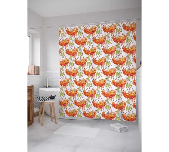 Штора (занавеска) для ванной JoyArty "Рябиновые кисти" из сатена, 180х200 см с крючками, sc_38382