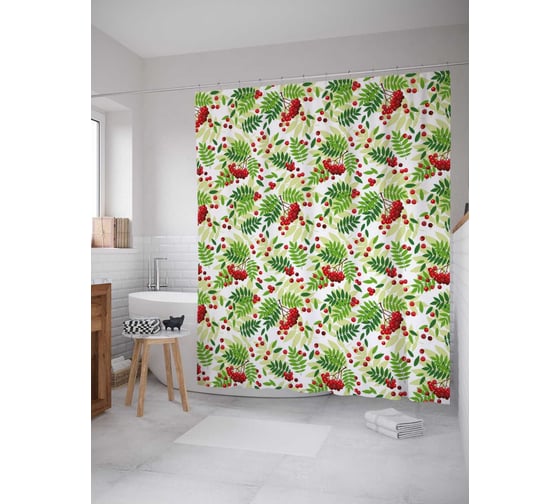 Штора (занавеска) для ванной JoyArty "Рябиновые ягоды" из сатена, 180х200 см с крючками, sc_38372