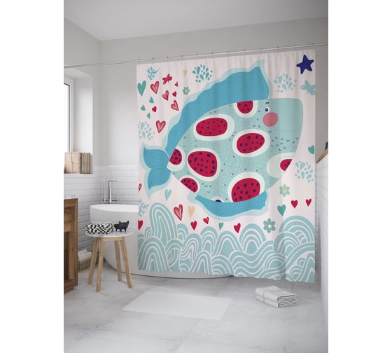Сопутствующие товары для шторки-занавески JOYARTY Рыба в пятнышках из сатена, 180х200 см с крючками