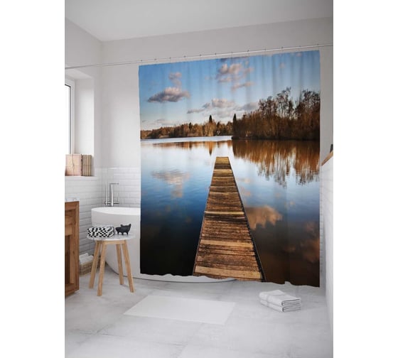 Штора (занавеска) для ванной JoyArty "Рыбацкий мост" из сатена, 180х200 см с крючками, sc_6526
