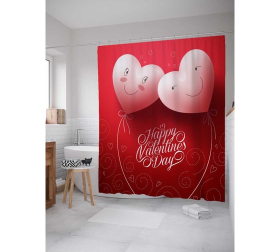 Штора (занавеска) для ванной JoyArty "С днем влюбленных" из сатена, 180х200 см с крючками, sc_91983