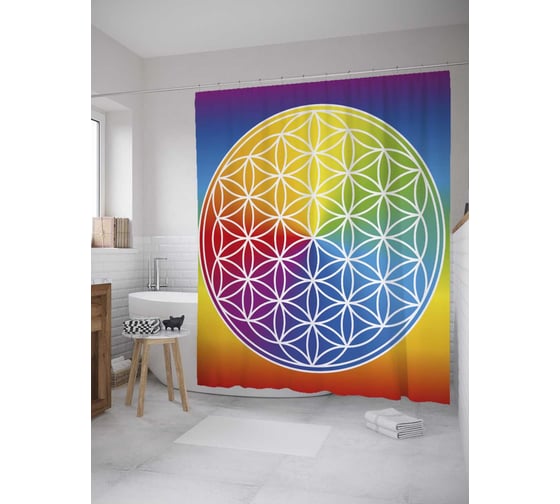 Штора (занавеска) для ванной JoyArty "Сакральная радуга" из сатена, 180х200 см с крючками, sc_28845