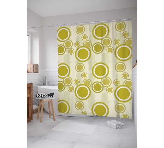 Сопутствующие товары для шторки-занавески JOYARTY Салатовые круги из сатена, 180х200 см с крючками