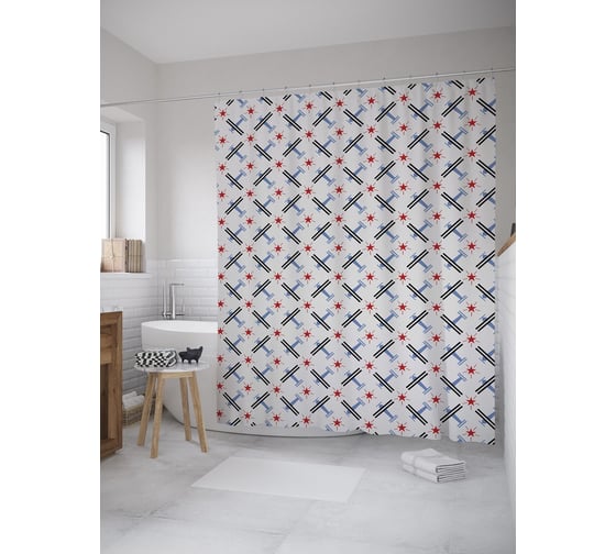 Штора (занавеска) для ванной JoyArty "Самолет и звезда" из сатена, 180х200 см с крючками, sc_55891