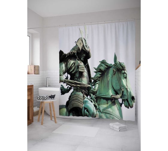 Штора (занавеска) для ванной JoyArty "Самурай на лошади" из сатена, 180х200 см с крючками, sc_9956