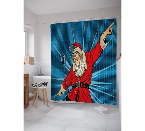 Штора (занавеска) для ванной JoyArty "Санта рокмен" из сатена, 180х200 см с крючками, sc_39470